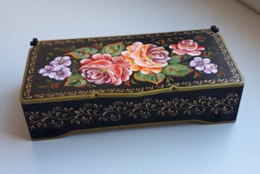 Занимаясь росписью, получаешь большое удовольствие, успокоение, забываешь про свои болячки (мне даже, кажется, что занятие росписью лечит). Стараюсь побыстрее управиться со всеми повседневными обязательными делами, чтобы побыстрее сесть порисовать, да хотя бы ненадолго кисточку подержать.